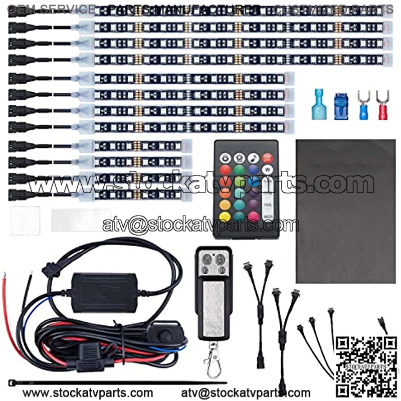 12pcs Underglow RGB LED Strip Light Kit DC 12V with 2 Red Blinking Brake Light Styles for Motorcycles Trikes Golf Carts ATVs UTVs C M12r