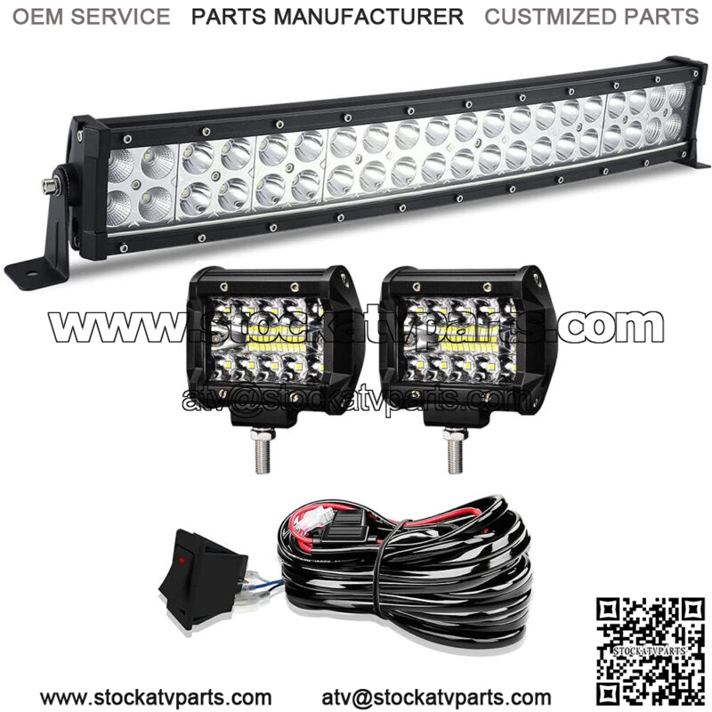 Applications: for Off Road Lighting: Jeeps, 4×4, Cars, ATV, UTV, SUV, Truck, Trailer, Forklift, Trains, Boat, Bus, Outdoor lighting, etc.for Other Lighting: Excavator, Dozer, Road Roller, Crane, Tractor, Harvester, Grain Drill, Mower, Snowplow, Fire engine, Rescue Vehicle,for Outdoor professional engineering lighting: such as construction lighting, mining lighting etcfor Outdoor living lighting: such as camping, fishing, BBQ ,Boat cabin lighting, hunting, camping etc Fitment vehicles: for Polaris RZR/ACE/GENERAL/RANGER/Sportsmanfor Toyota Tundra/Tacoma/FJ Cruiser/Hilux/Pradofor GMC/Honda/AMG G/Hummer/Land Rover/NISSAN TITANfor Pickup/Cab/ATV/SUV/Truck/Bus/4WD/4X4/UTE/Vanfor Dodge Ram 2500/3500 2003-2016for RAM 1500/2500/3500/REBEL/PROMASTER/CHASSIS CAB Specifications LED Power: 120W -Operating Voltage: 9-32V DC-Waterproof rate: IP 68-Base Color: Black-Shape: Curved-Material: Diecast aluminum housing-Lens material: PMMA-Mounting Bracket: Alu firm bracket-Beam Type: Spot & Flood COMBO