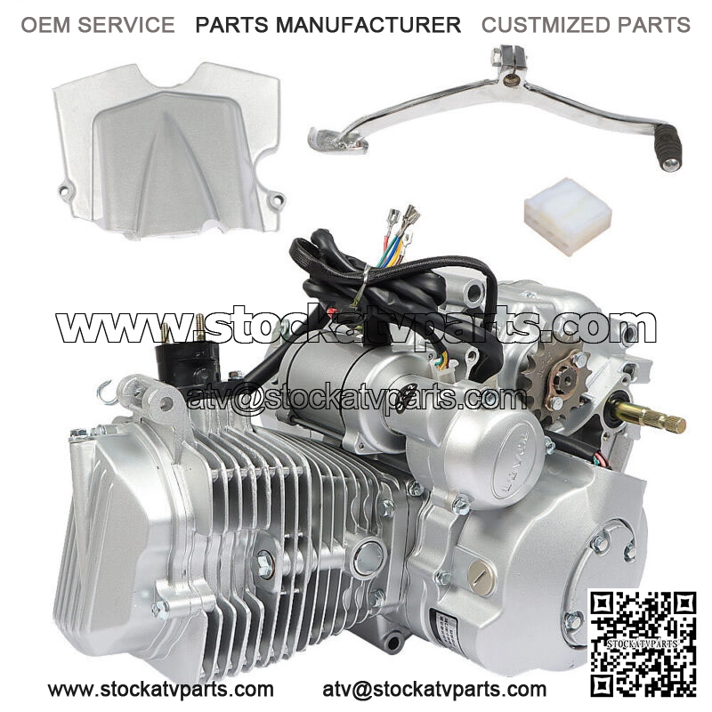 This engine assembly comes with Intake Pipe, Start Lever, Sprocket Cover & Spark Plug, but doesn’t come with Carburetor, Battery, CDI, Voltage Regulator, Ignition Coil etc.