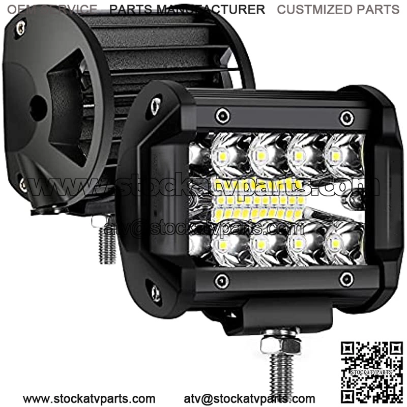 Super Bright and Excellent Visibilityled pod lights has advanced LED chips, and centered 170 flood LEDs surrounded by dual row 30 spot diodes, Automotive light bar offering a perfect focused light with large-angle flood beam around to achieve both longer range and wider vision. IP68 Waterproof4 inch led light bar with great performance, dust proof, rustproof, shockproof, works well in rainy, foggy days and other harsh condition. Efficient heat disationLed off road lights with 6063 Die-cast aluminum alloy housing & cooling fans for maximum heat disation, the high-quality heat conduction silicone gel can effectively extend the lifespan of the slim led pod lights to over 50, 000 hours. Universal Fitled light bar 4×4 with DC 10V-30V operating voltage range, widely compatible with different types of golf cart, jeep, atv, utv, boat, truck, off road, motorcycles, SUVs, trailer, etc. Easy Installation4 inch atv led pods come with adjustable mounting brackets, it can be