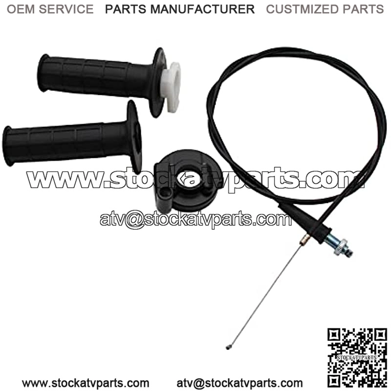 Its material is Aluminum alloys+Rubber. This handlebar replacement set includes 1pc left hand grip +1 pc right hand grip +1 pc throttle tube installed, smooth surface with 2pcs high quality screws.