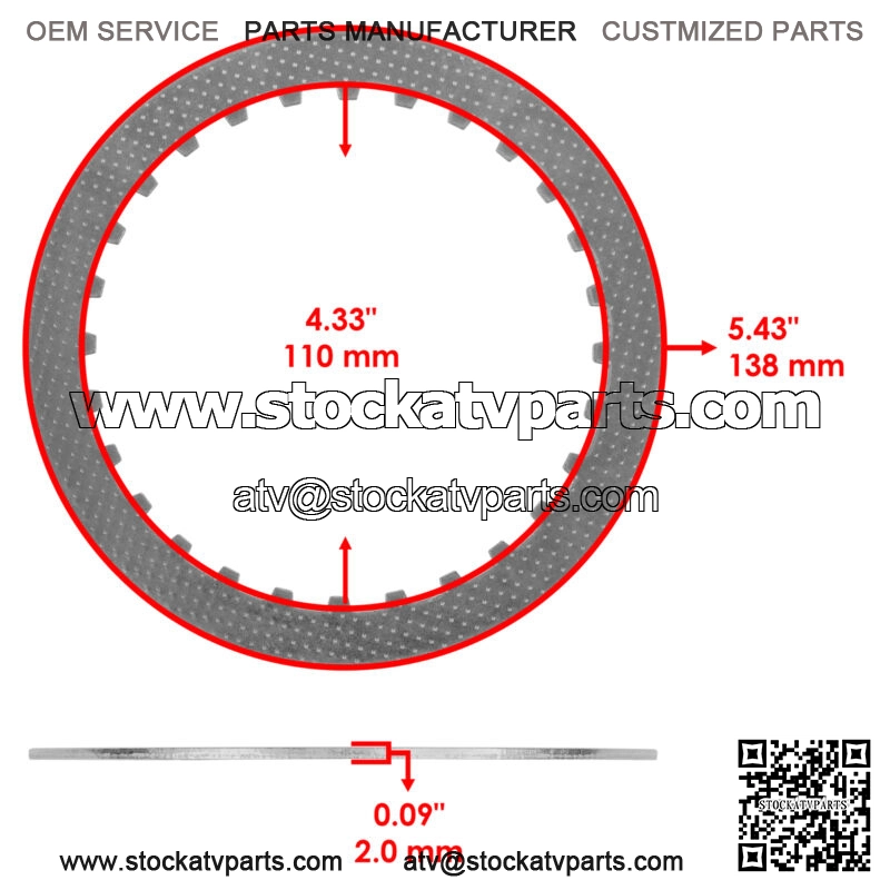 Dimensions & Measurements:Inner Diameter | 4.33″ | 110mmOuter Diameter | 5.43″ | 138mmWidth | 0.09″ | 2.3 mm