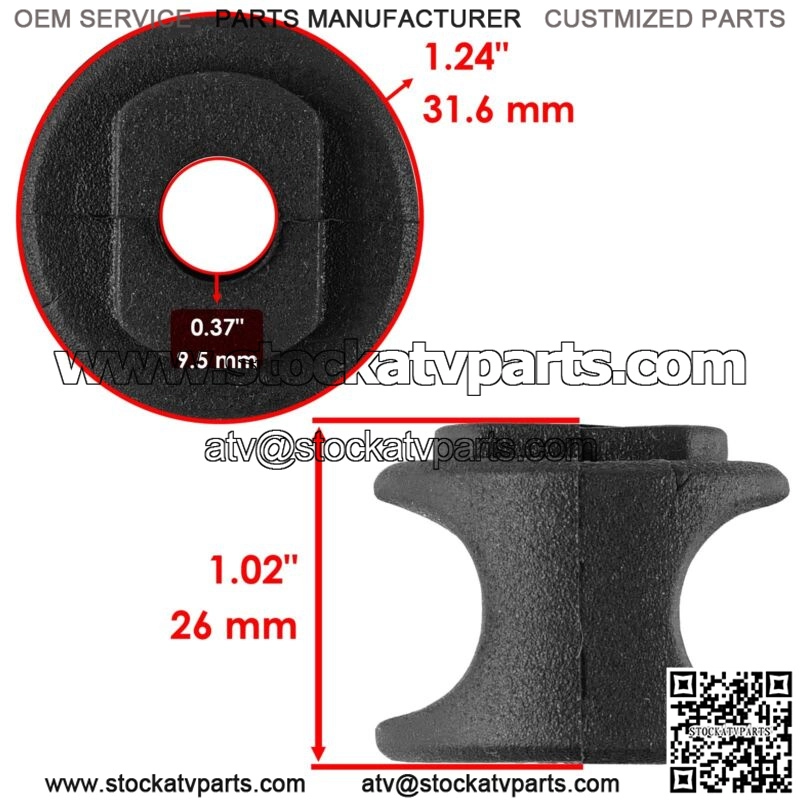 Premium Quality Replacement Part8xRear Suspension Stabilizer Bushing for Polaris Sportsman 400 01-2005 2011-2014For Polaris Models:Sportsman 400 2001-2005 2011-2014Order Includes:8 x Stabilizer Link Bushing : 5432598 5432119 5435323 5436576Height: 1.02″ | 26.0 mmInner Diameter: 0.37″ | 9.5 mmOuter Diameter: 1.24″ | 31.6 mm**