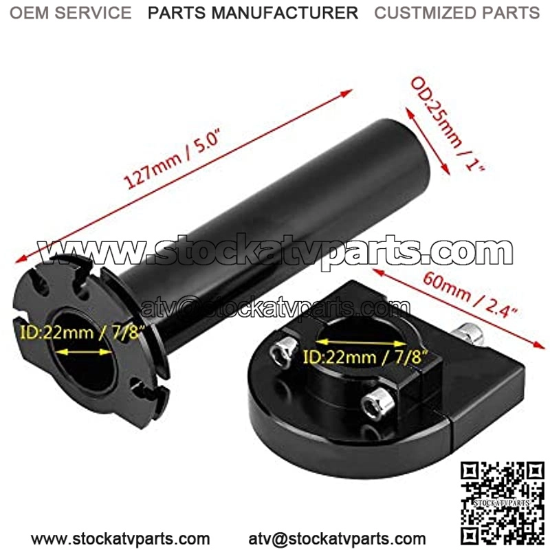 7/8″ 22mm Throttle Twist Grip—- This throttle twist grip is suitable for most motorcycles, Dirt Bike or scooters with 7/8″ (22mm) handlebar. The Outer Diameter: 22mm. The inner Diameter: 25mm. Tube Length: 120mm