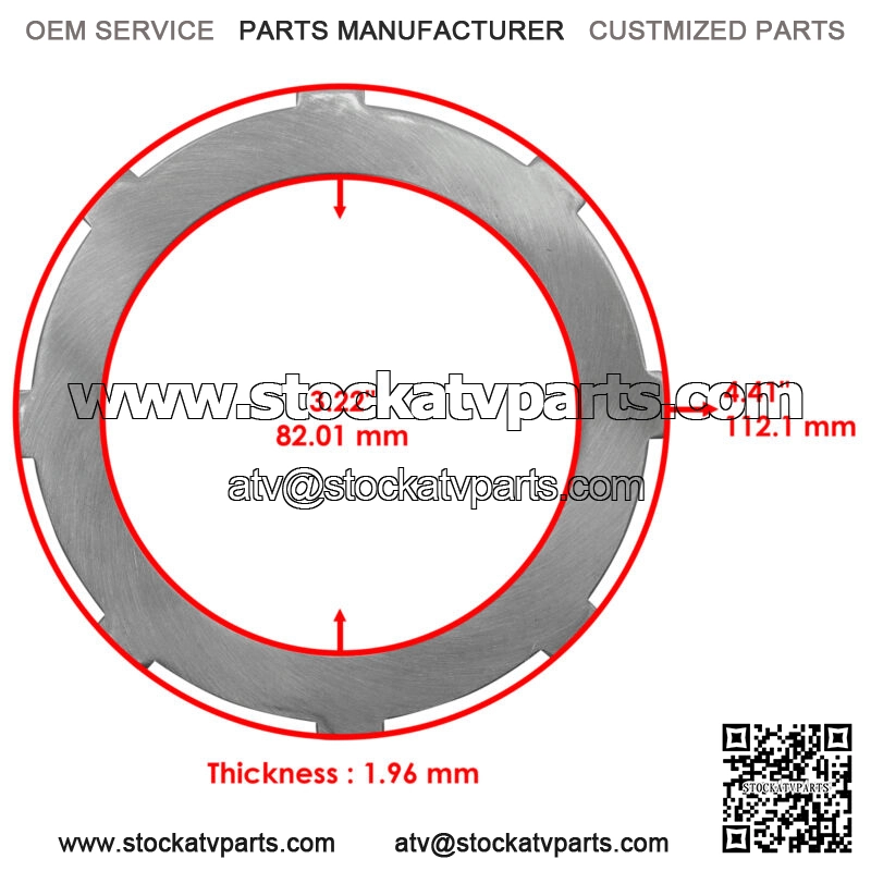 Inner Diameter: 82.01mm | 3.22″Outer Diameter: 112.1mm | 4.41″Thickness: 1.96mm