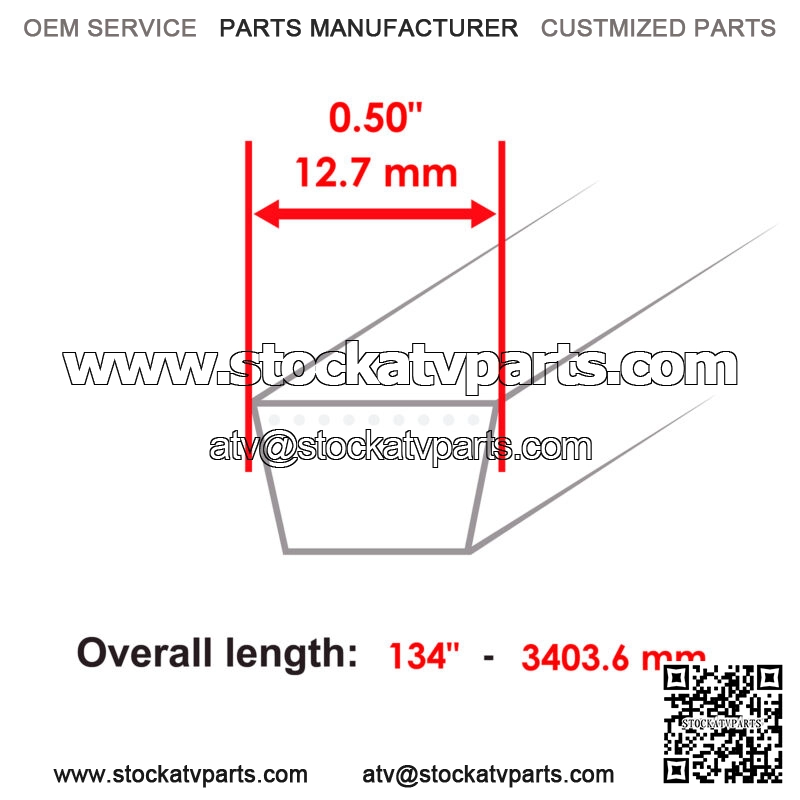 1 x Belt (1/2″x134) | 754-04044 754-04044A 954-04044 954-04044A 265-230Overiall length : 3403.6 mm | 134″