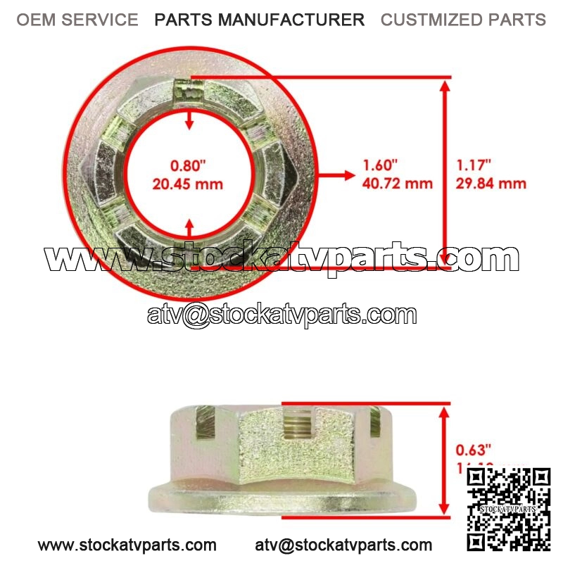 4 x Castle Nut | 0423-607Width : 16.19mm | 0.63″Inner Diameter : 20.45mm | 0.80″Outer Diameter : 40.72mm | 1.60″