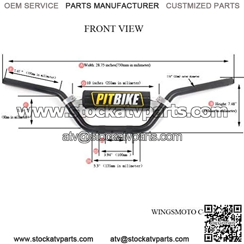 This is a 7/8″ dirtbike handle bar with foam pad and extra 304 stainless steel bolts.There is a 5mm inner diamter right switch mounting hole. Please look at picture for detail measurements.