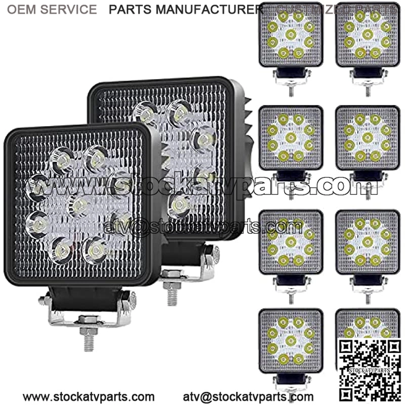 LED Power:10Pcs 4inch Round 27w (9X3w Leds)3500LM Led work Light Compatible with All automobiles and devices equipped with a 12 to 24 Volt DC power source Shell Material: Black painted high quality aluminum housing, stainless steel mounting bracket and shatterproof lenses with IP67 waterproof, durable to withstand any harsh condition. Great performance of waterproof, dustproof, shockproof and anti-corrosion in extreme weather condition. Beam type: The spot beam can be seen more longer than flood beam, so it can elongate fields of view in the dark and gives us brighter light to ensure our safety.It use the latest LED technology, Supplying superior light output and will not drain your battery. Saving more energy, improving efficiency and so on. Application:Indoor and Outdoor uses, Back up light, OffRoad Lighting,Bumper lights,Reverse lights, Truck, Trailer, Exterior Lighting, Construction Lighting, Golf Cart ,Backyard Lighting, Boat, Excavator, Dozer, Crane, Tractor, Harvester,