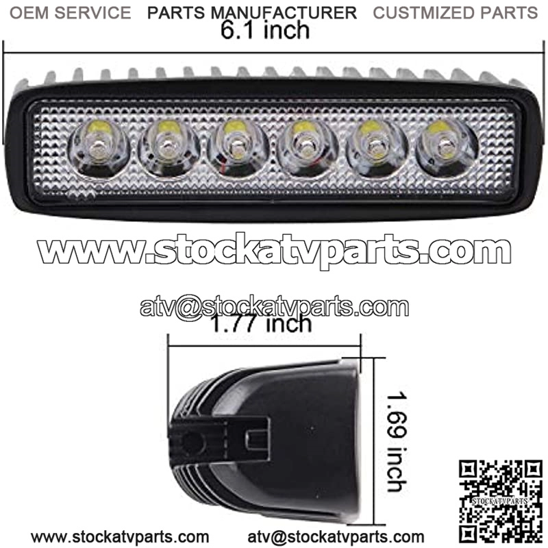 Ship from USA Warehouse.Priority delivery: 2-3 days. Standard delivery: 4-8 days.2x High Powered spot LED Work Light Bar Strip, 6 x 3 Watt high power & high intensity White LEDs at 6,000K color temperature with 1320 Lumens. Long Lifespan: Eco-friendly low power consumption design with integral heatsink for longer lifespan, rated at 30,000 hours.Tough Design: Black painted high quality aluminum housing, stainless steel adjustable mounting bracket and shatterproof lenses with IP67 waterproof, durable to withstand any harsh condition. Great performance of waterproof, dustproof, shockproof and anti-corrosion in extreme weather condition.DC 10V-30V operating voltage range: It can apply to different types of trucks, Off-road vehicles,4×4,SUV, Mining, Boating, Farming and Heavy Equipment etc.Package Contents: 2x Northpole Light 18W Waterproof Work Light Strips, Adjustable Mounting Brackets, Screws Set and 12 Month Worry-free Warranty.Product DescriptionSpecifications:Operating Voltage: DC 10-