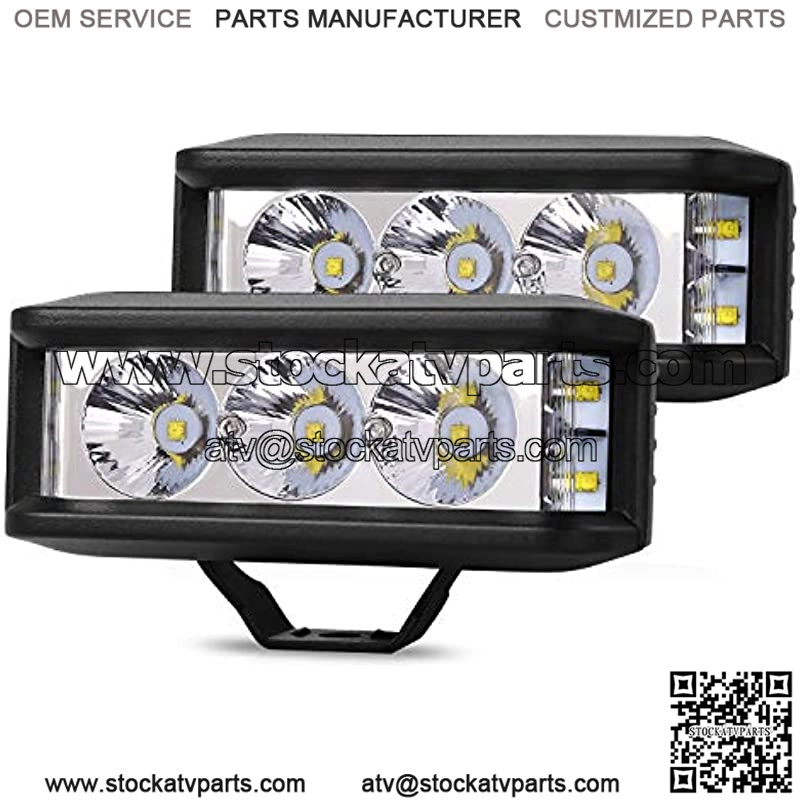 Side Light DesignBoth sides are equipped with side lamps, aiming to widen drivers line of sight.LED side shooter light pods make the vision on both sides clearer,which increases the safety of driving at night.Super BrightnessFlood & spot beam combo with 7PCS upgraded LED chips,emitting 6000K 6000LM bright cool white light and reaching 1LUX@118M lighting distance.IP67 Waterproof RateThe off road lights are wrapped in a seamless protective shell,which has excellent waterproof,dustproof and shockproof performance,and can completely resist the harsh environment of off-road driving.Rapid Cooling System12PCS thin radiator fins on the back make the driving light cool down quickly to get optimal heat disation status,effectively extend its lifespan to be 50000hrs.Wide Applications and Superior Service LED pods is compatible with most of DC 9-30V Off Road,Truck,SUV,ATV,Motorcycle,Boat,etc. Also can be used for garden,backyard and construction lighting.We offer ONE YEAR” warranty,p