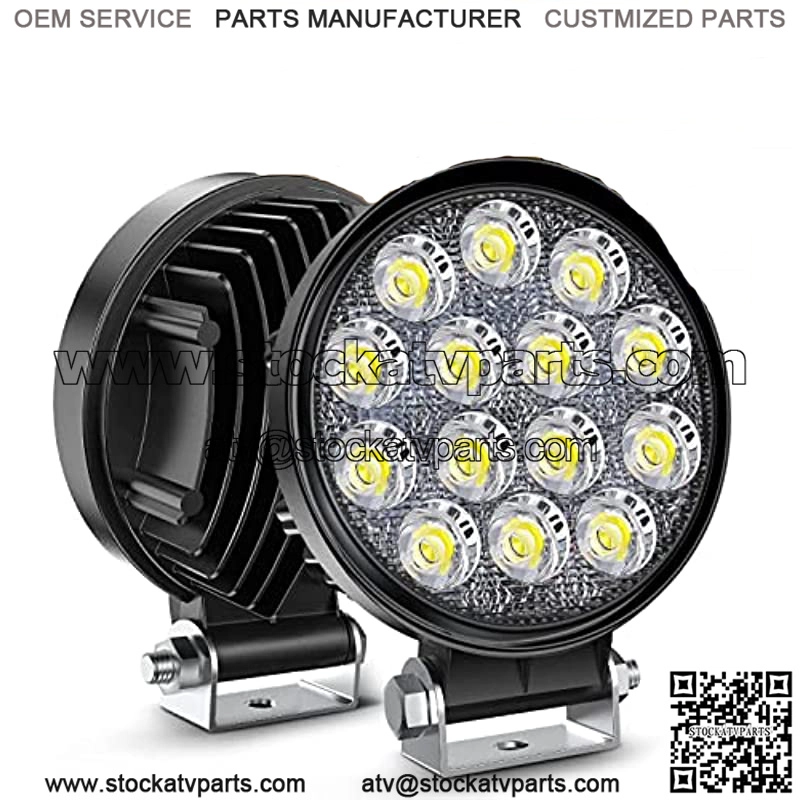 upgraded brightness: 14pcs*3w high quality led chips at 6000k color temperature, flood beam light, illuminate your road clearly in the darkness, which will give you a more safe and comfortable driving experience.high performance: 1.9inch thicker housing design for an optimal cooling effect and safe operating temperature.portability and versatility with a tough, aluminum cover, tough shatterproof pc, protective cover durable to withstand for any extreme usage conditioneffective protection: ip67 waterproof rate, can effectively resist water and dust, avoiding moisture and condensation.wide application: fit for any 9-30v vehicles and can be generally used on multiple locations, oem fog light holes, front bumper, bullbar, hood, a-pillar, roof, rear bumper, etc. work perfectly as fog lamps, driving lights, headlights, backup lights, etc.package included:2pcs 42w led light pods,2 sets mounting bracketsFit type: Universal FitProduct DescriptionSpecification: LED Power: 42W Beam Pattern: Flood