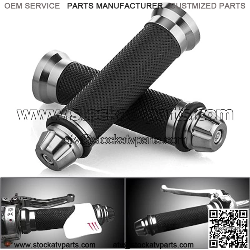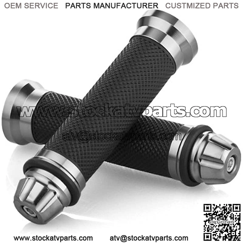 Product: Motorcycle Gunmetal Rubber Hand Grip For 7/8″ 22mm Handlebar Street Sport Dirt Bike with Billet Aluminum Bar End Cap