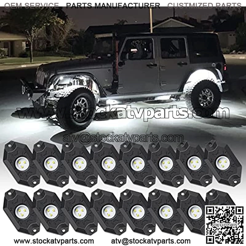OPP ULITE 16 luces LED blancas de roca, impermeables, a prueba de golpes, para Jeep Offroad UTV ATV ZRZ SUV Auto 4×4 coche barco (16 piezas blancas)