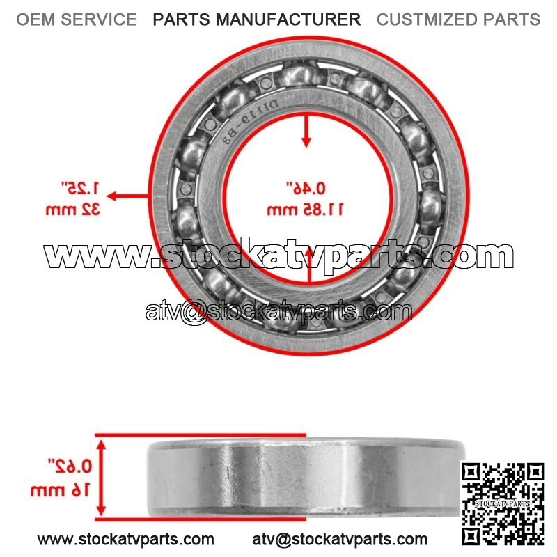 1 x Bearing | 91054-HP5-601 Width : 16mm | 0.62″Inner Diameter : 11.85mm | 0.46″Outer Diameter : 32mm | 1.25″