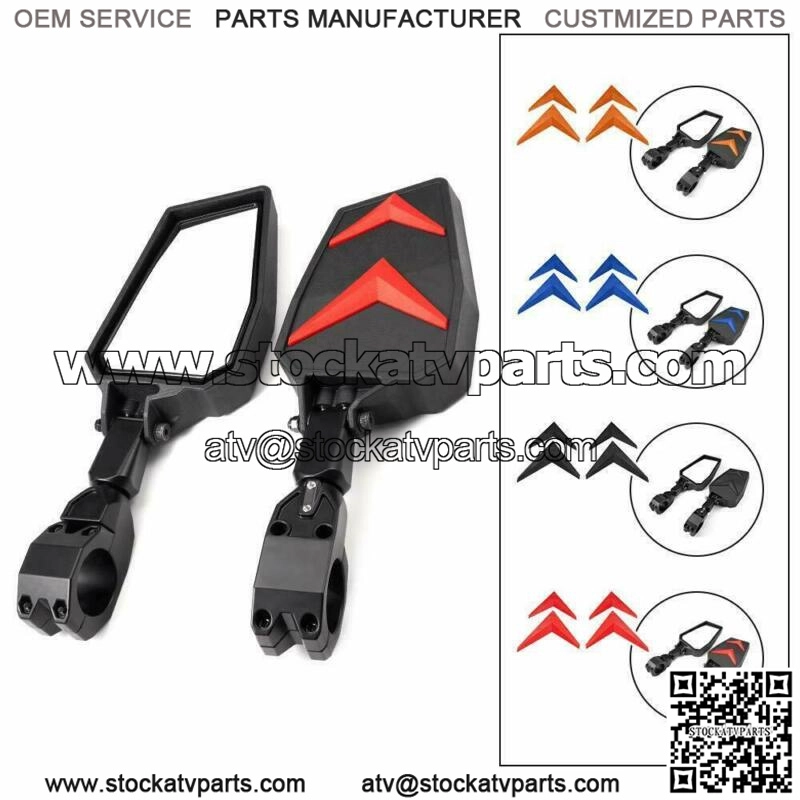Description:Condition: 100% Brand NewMaterial: Aluminum, Glass, Plastic, Acrylonitrile Butadien StyreneLens Curvature: Convex;Features:1.Wide Viewing RangeNot just make it street legal, but stick out far enough to see what’s behind you, made of high impact ABS shell, glass lens and durable clamps, the whole set of side mirrors are wear and corrosion resistant, great for all weather conditions.;2.Break-awaySide Mirrors have break-away feature with 180 Degree adjustable angle, you need to check it or tighten the screws after installation, and you can press the glass to adjust the mirror angle, too.3.Adjustable Mirror AngleAt the end of the side mirror arm, there is a bolt. Unscrew it and you will see its construction. Two gears to adjust the angle, change it to different position to meet your needs.4.FitmentUTV side view mirrors fits all UTVs with 1.75 to 2″ roll bar. Back view mirrors will compatible with Polaris 900 / 1000 / 570 / 800, 2020-2023 Polaris XP Pro,2020 Can Am Defender Pro, Yamaha XYZ 1000, Kawasaki Mule 3000 and 4000 series and the list goes on. Note: Do not fit ATV models.5.PackageUTV side mirrors come with Black, red, blue, orange inserts, you can DIY and change the mirror color by yourself. Decorating your side view mirrors, different from others and show your own style.6.Easy InstallationInstall the aluminum clamp to the roll bar firstly, check the fold back feature, if it is too tight to operate, you can loose the bolt at the end of the mirror arm a little bit, then attach the mirror arm to the clamp.Fit for:Fits all UTVs with 1.75 to 2″ roll bar- Compatible with All Polaris RZRs 570 800 900 1000- Compatible with Polaris Rangers (round roll bar); 2002-2008;- Compatible with 2020-2023;Polaris Pro XP (Does not fit 2020 Xp Pro Ultimate.)- Compatible with 2009-2014 Full Size Polaris Rangers (except Ranger XP900)- Compatible with 2009-2014 Mid Size Polaris Rangers (Does not fit 2015)- Compatible with Arctic Cat Wildcat and Wildcat 4, Arctic Cat Prowler (with round roll bars)- Compatible with All Yamaha Rhinos 450 660 700, Yamaha Viking, Yamaha Wolverine- Compatible with Most Hisun UTVs with 1.75″ Roll Cage- Compatible with All Bobcat UTVs, Kymco UTV’s, Bad Boy MTV, Can Am Commander- Compatible with Kawasaki mule 3000 SeriesKawasaki mule 600 Series;Note:These UTV side mirrors are not compatible with the 2015 and up Polaris Ranger. Do not fit with the windshield.;Package inclued:;One pair UTV Side View MirrorRed Inserts (2 left, 2 right)Orange Inserts (2 left, 2 right)Black Inserts (2 left, 2 right)Blue Inserts (2 left, 2 right)