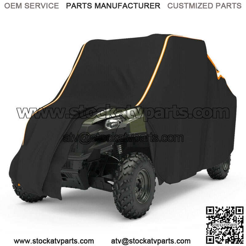 Details:;Aftermarket 100% Brand NewMaterial:;210 Denier polyesterColor: BlackSize(In):124.4″ x 58.3″ x 70.9″;Why you need UTV cover 1.Weather ProtectionThe first reason people purchase a cover for their vehicle is to protect it from the weather. The suns UV rays can wreak havoc on a car! They can damage a paint job and cause rubber trim to crack as well as cause damage to the interior.2.Animal ProtectionHave you ever walked outside to see bird droppings on your newly washed car By putting a cover on your UTV, you can deter animals from making themselves at home there and keep your UTV clean.3.Leaves/ Dust ProtectionLeaves and dust will cover your UTV, hide its shinning skins, which will make it look old.Nothing is more frustrating than having to clean your machine every time you use it. With this cover your UTV will always be pristine.;;4.Elastic Band with Quick Release CordHeavy enough it won’t blow way in strong winds, also thanks to the elastic band around the bottom that secures the cover to your machine.Quick release cord, simply remove the cover, jump on, and go!5.Reflective Strip- High VisibilityThe reflective strips usually sewn on safety garment, such as safety vest,reflective jacket, safety work wear, bags and tents. It can helps the eye perceive objects in poor light conditions when illuminated by a light source.We use it on our UTV cover, then you can find your vehicle easily at night and people will bypass your vehicle, avoid scratch or accident.6.Water RepellentHeavy duty 210D Oxford WATERPROOF MATERIAL is just what the serious UTV owner wants.;Fitment:All UTV 2 door modelsCompatible with:2014-2023;Polaris Range 570;2014-2023;Polaris Range 9002014-2023;Polaris Range 10002014-2023;Polaris XP 10002017-2023;Polaris 1000 S2015-2023;Polaris 900 modelsetc..